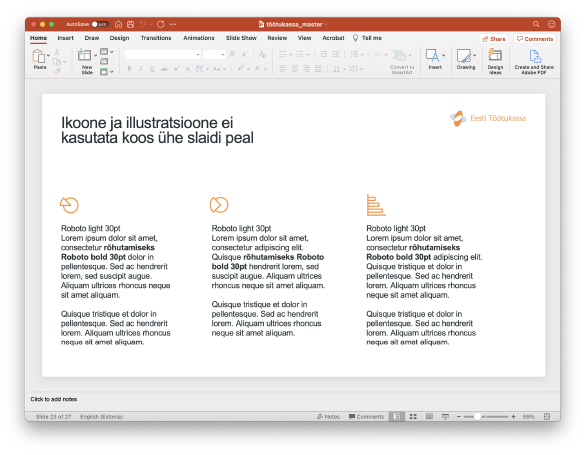 Soovituslikult kasutatakse infokandjatel (töötukassa koduleht, trükised, reklaammaterjalid jm) läbivalt Roboto kirjatüüpi.