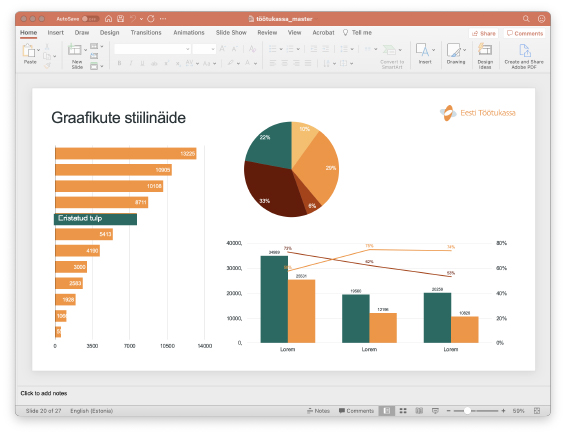 Kasutusjuhendis on põhjalik ülevaade Eesti Töötukassa visuaalse keele kasutamise reeglitest: vaatluse all on logo, värvid, kirjatüübid, pildikeel ja kujunduste laad üldmuljest kuni pisidetailideni.