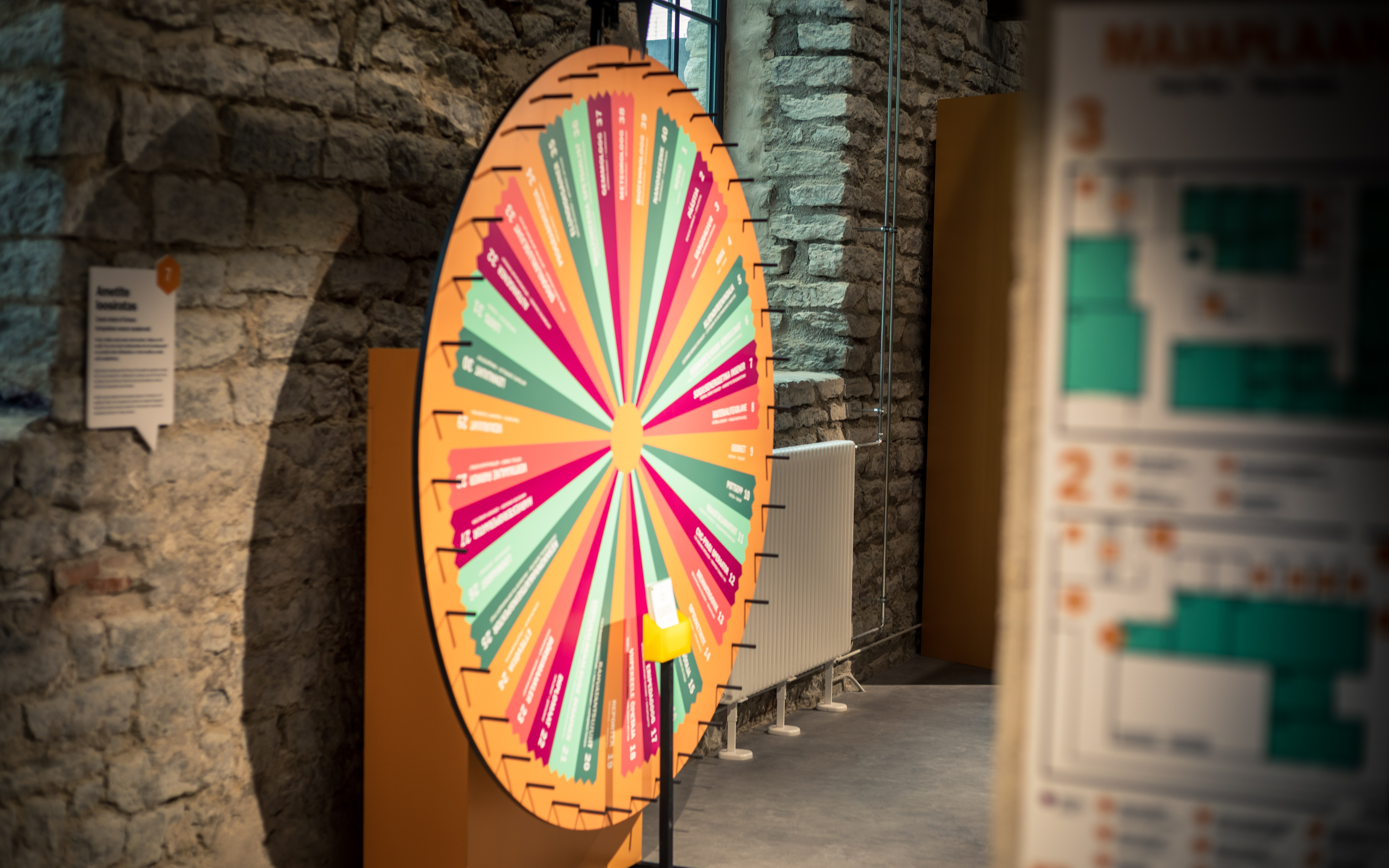 Reklaam pildi ja kaarega, kus kaarest välja jäävat osa katab läbipaistev oranž värv (töötukassa oranž multiply’ga)